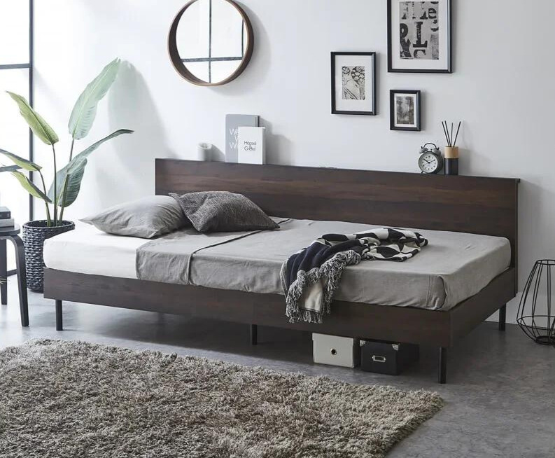 引き出し収納が無い分、価格が抑えられた商品です。棚やコンセントはついており、ベッドやソファとして使用する分には十分です。もちろん、ベッド下部に収納BOXを置いて、収納スペースとすることも可能です。