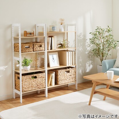 同じくニトリから発売されているバスケット(ラタン、自然素材、手編み風)やボックスを使えば、簡単に「隠す収納」を作ることもできます。