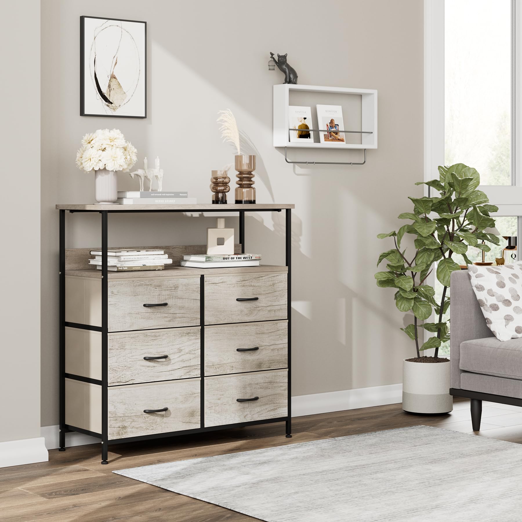 こちらも、隠す収納と見せる収納のバランスが良いチェスト。